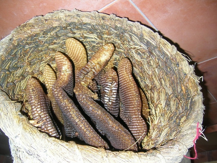 En ellas las abejas construían los panales a su albedrío, pegados a las paredes y el techo (fijos). Había que romperlos para sacar los que tenían miel. Estos después se prensaban para separar la miel de la cera, y se aprovechaban ambos productos; al coste de que las abejas tuvieran que reconstruir todos los panales extraídos. La producción media de este tipo de colmena podía ser de unos 8 kg/año, ya que la producción de 1 kg de cera (unos 5 panales) requería que las abejas consumieran unos 8 kg de miel, en promedio.