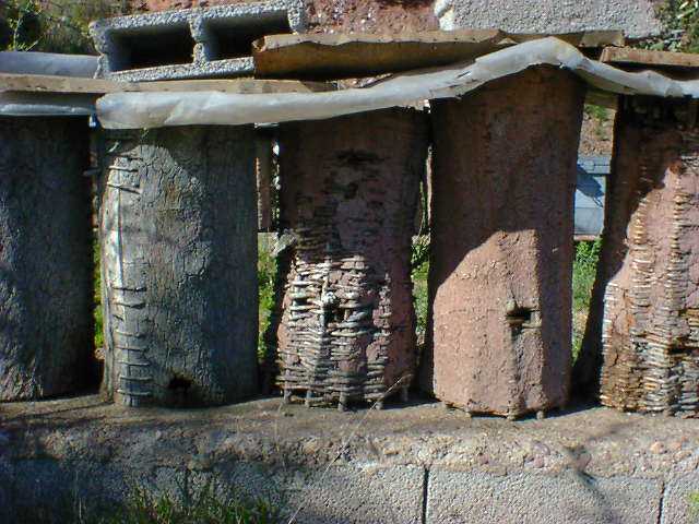 Las colmenas de esa época eran básicamente un tubo, de los materiales disponibles en cada zona: cerámica, troncos vaciados, maderas, mimbre o caña recubiertos de reboque, etc.