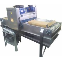 It has a cutting area with 2 axes of blades, one lower and one upper moved by a 1cv single-phase motor and the conveyors by a 0.5cv single-phase motor reducer, with a lower tray for collecting the opercules (it can be coupled to a later press, foundry or centrifuge). It is also mounted on swivel castors with brakes. Height 950mm, length 1900mm, weight 158kg, conveyor width 600mm and overall width 900mm.