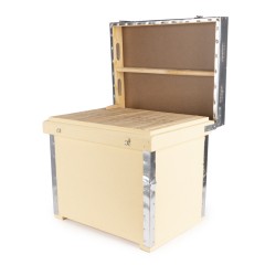 Inoltre, puoi scegliere tra l'arnia Layens standard o due finiture di verniciatura: grigio standard o vernice speciale sabbia, che offre molta più protezione contro le intemperie. Quest'ultima è altamente raccomandata per chi desidera massimizzare la durata dell'arnia.