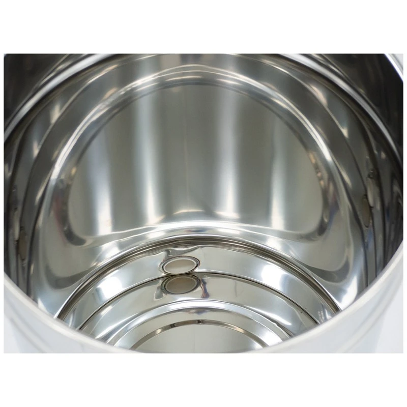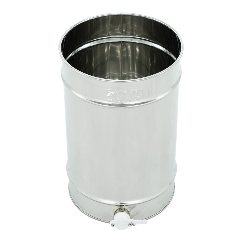 Fabricado na Polónia com design italiano, este modelo destaca-se pela sua robustez, capacidade e acabamento higiénico, ideal para lidar com lotes médios ou grandes após a extração. É construído totalmente em aço inoxidável alimentar, com 0,6 mm de espessura nas paredes e 0,8 mm na base e na tampa, garantindo durabilidade mesmo com uso intensivo.